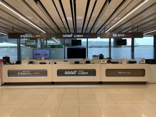 At the airport, you can find rental counters for companies like Hertz, AVIS, LOTTE Rent-a-Car, located on the 1st floor Arrival Hall.