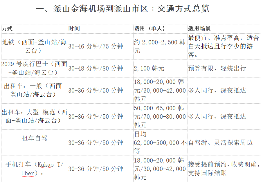 无论选择哪种方式,提前规划路线、备好韩文地址和现金,都能让你的釜山之旅更顺畅!祝旅途愉快!