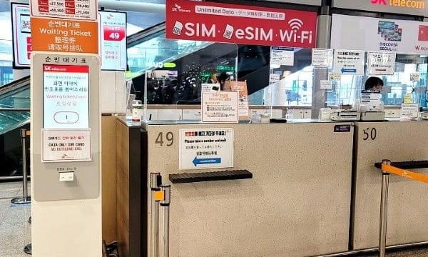 抵达后可在机场租用Wi-Fi蛋或购买预付费SIM卡(KT/SKT柜台)。