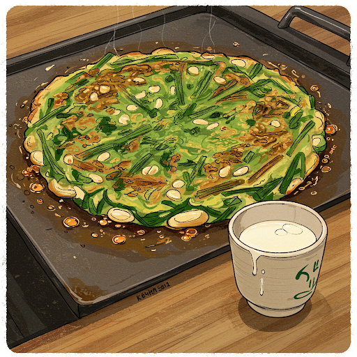 民間料理:綠豆煎餅(빈대떡)+馬格利米酒(막걸리)