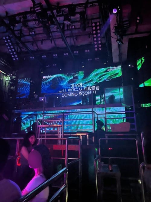 这家韩国夜店设有一个专业舞台,表演者可以在这里尽情Rap/唱歌/跳舞等各种才艺。灯光与音响系统配合默契,营造出充满能量的现场氛围。无论是台上热力四射的演出,还是台下观众的热情互动,都让人沉浸在节奏与自由的夜晚之中。这里不仅是一家夜店,更像是一场随时上演的迷你演唱会,深受年轻人和外国游客喜爱。