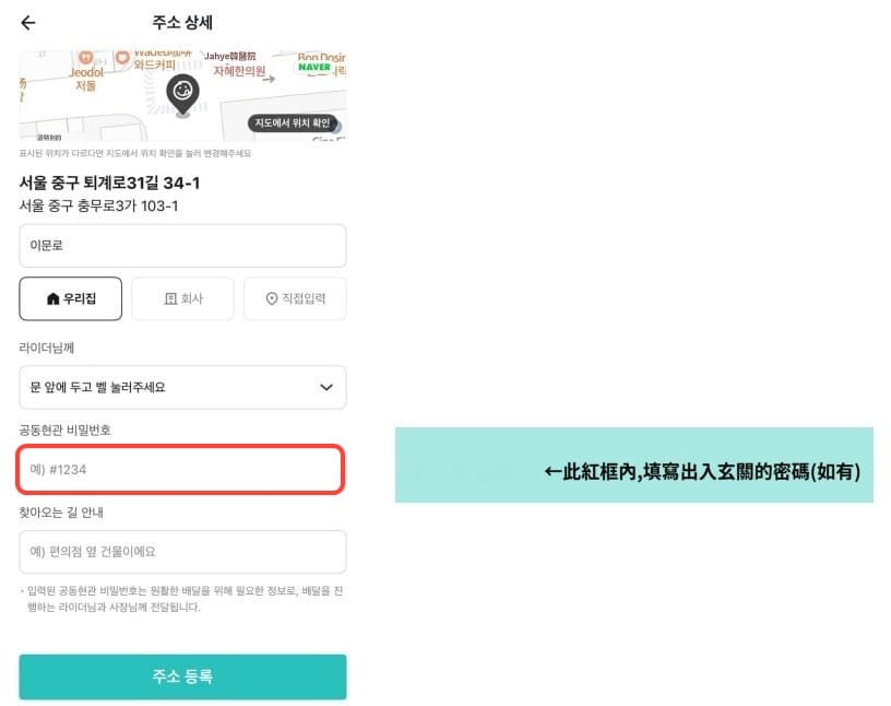 注:在圖中紅框處輸入地址,韓文名(推薦使用Papago翻譯,將英文地址翻譯成韓文地址)
