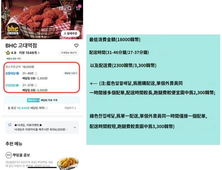 STEP 2. 然後進入店鋪頁面(以BHC炸雞為例)紅框處自上而下顯示為