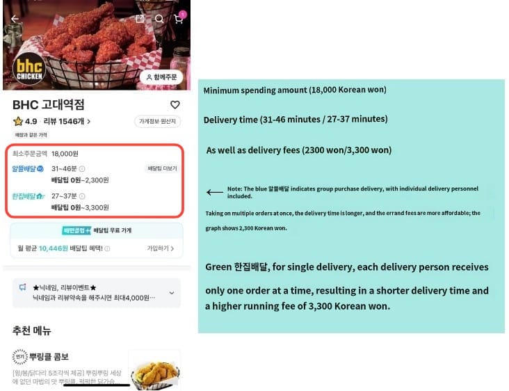 For foreign travelers, the Korean food delivery app 배달의민족 (Baemin) is a convenient tool to enjoy local cuisine.