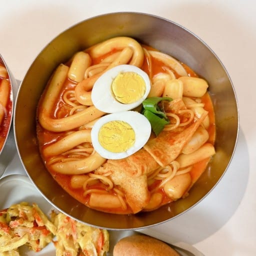 Chewy rice cakes soaked in a spicy, flavorful sauce, tteokbokki is one of Korea’s most popular street foods. Paired with fish cakes and boiled eggs, it's the perfect spicy indulgence.