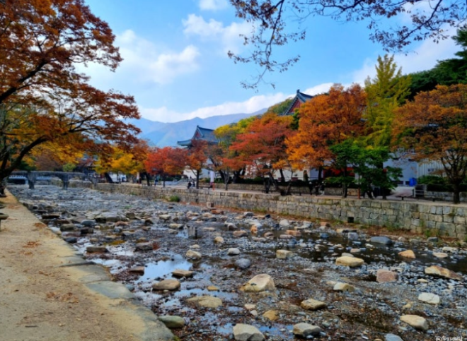 通度寺(통도사)是一个能让人感受到韩国佛教深厚气息的地方。 它位于庆尚南道梁山市,建于新罗时代的646年,是韩国三大寺院之一。与一般供奉佛像的寺庙不同,通度寺供奉着释迦牟尼佛的真身舍利,因此被称为“佛宝寺”。凭借其神圣性与历史价值,通度寺也被列入了联合国教科文组织世界文化遗产名录。