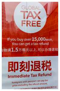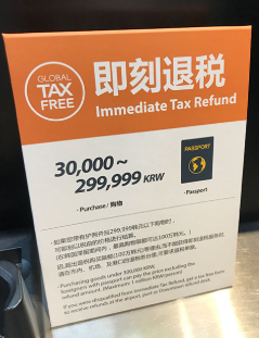 Ex: olive young,现代百货等有“即时退税”标识的店铺