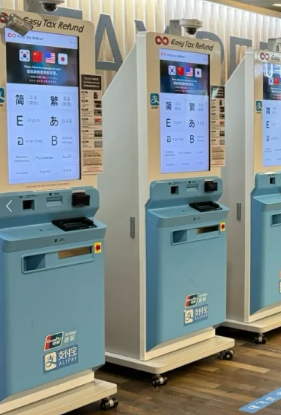 - 单笔消费金额约小于100万韩元时(退税金额不超过75,000韩元):可直接使用自助退税机办理,免人工服务。