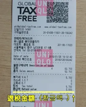 - 单笔消费金额约大于100万韩元时(退税金额约超过75,000韩元):高价值免税品需前往人工柜台办理,并携带未开封商品供海关检查。