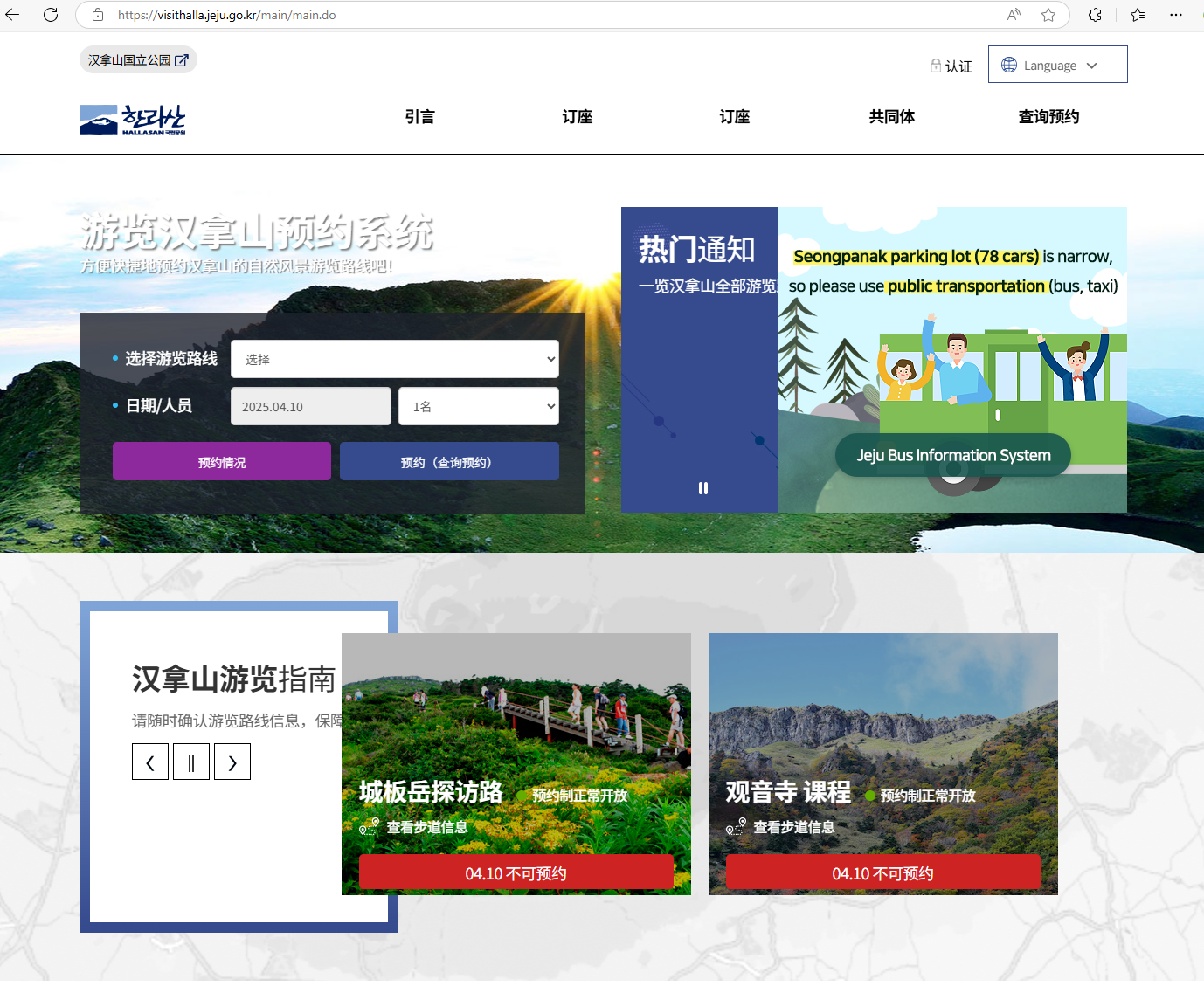 🌐 预约网址:https://visithalla.jeju.go.kr