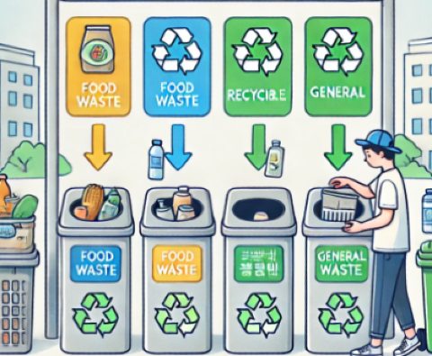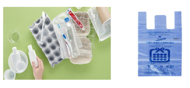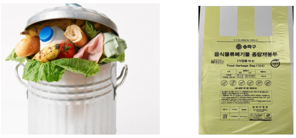- 食物垃圾:剩菜剩饭和食品包装上的食物残渣。韩国有一个很独特的食品垃圾处理系统,通常要投放在专门的食品垃圾袋(黄色、在便利店购买)中。这些垃圾经过处理后会用来制作堆肥或作为能源回收。