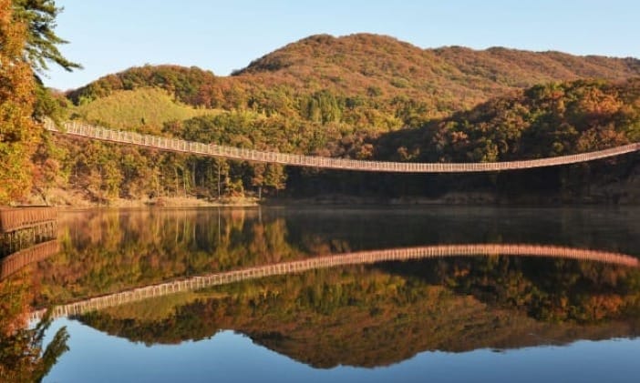 位置:马场湖悬索桥位于韩国京畿道坡州市